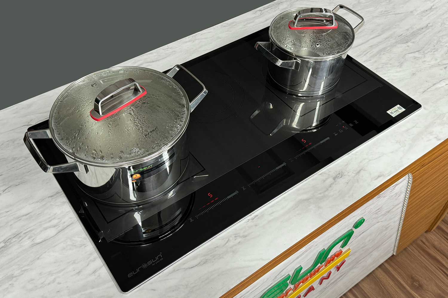 Tự động phát hiện vùng nấu và vùng nấu chỉ nóng lên khi có nồi: Các sản phẩm bếp điện từ của Eurosun bao gồm EU-TE398Pro sẽ chỉ khởi động công suất khi nồi được đặt lên vùng nấu, trường hợp chưa đặt nồi khi đã khởi động, bếp sẽ không đóng công suất và cảnh báo mã lỗi không có nồi hoặc nồi không phù hợp.