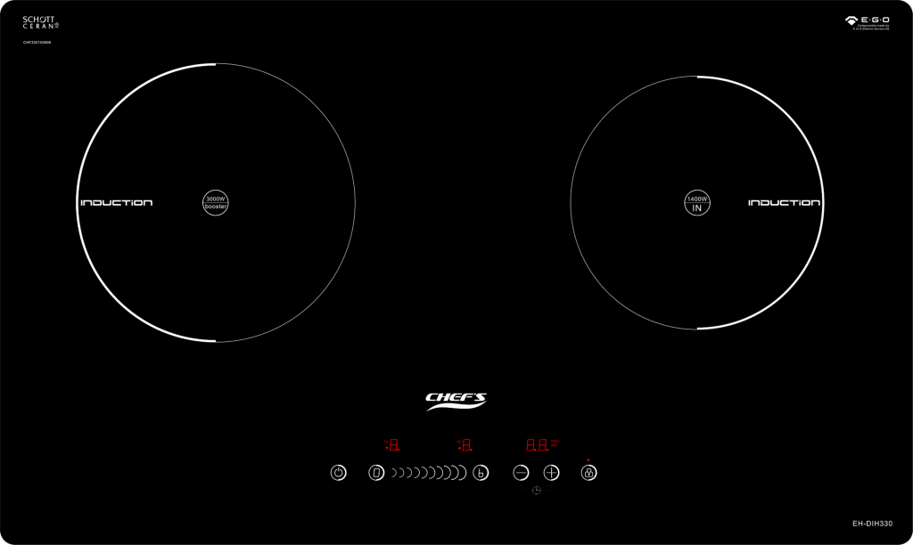 Bếp từ đôi Chefs EH-DIH330 với thiết kế sang trọng, sử dụng linh kiện E.G.O và mặt kính Schott Ceran nhập khẩu trực tiếp từ Đức, an toàn và bền bỉ khi sử dụng