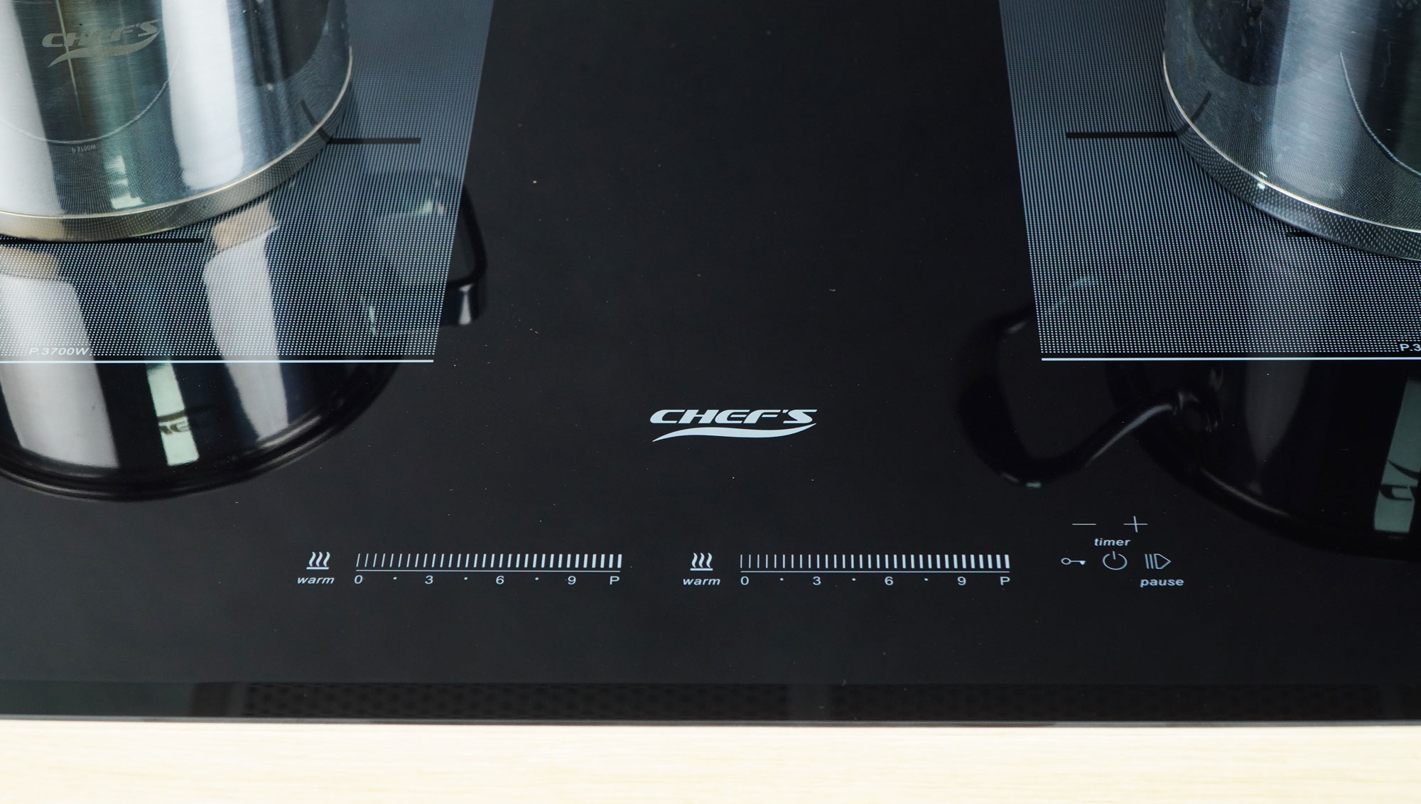 Đây một trong số rất ít bếp từ có thể đạt Booster lên đến 3700W. Với thiết kế của bếp từ Chefs EH-DIH896 cả 2 vùng nấu có khả năng kích công suất Booster cực đại lần lượt là 3700W | 3700W giúp công việc đun nấu trở nên nhanh chóng và tiết kiệm thời gian khi cần thiết.