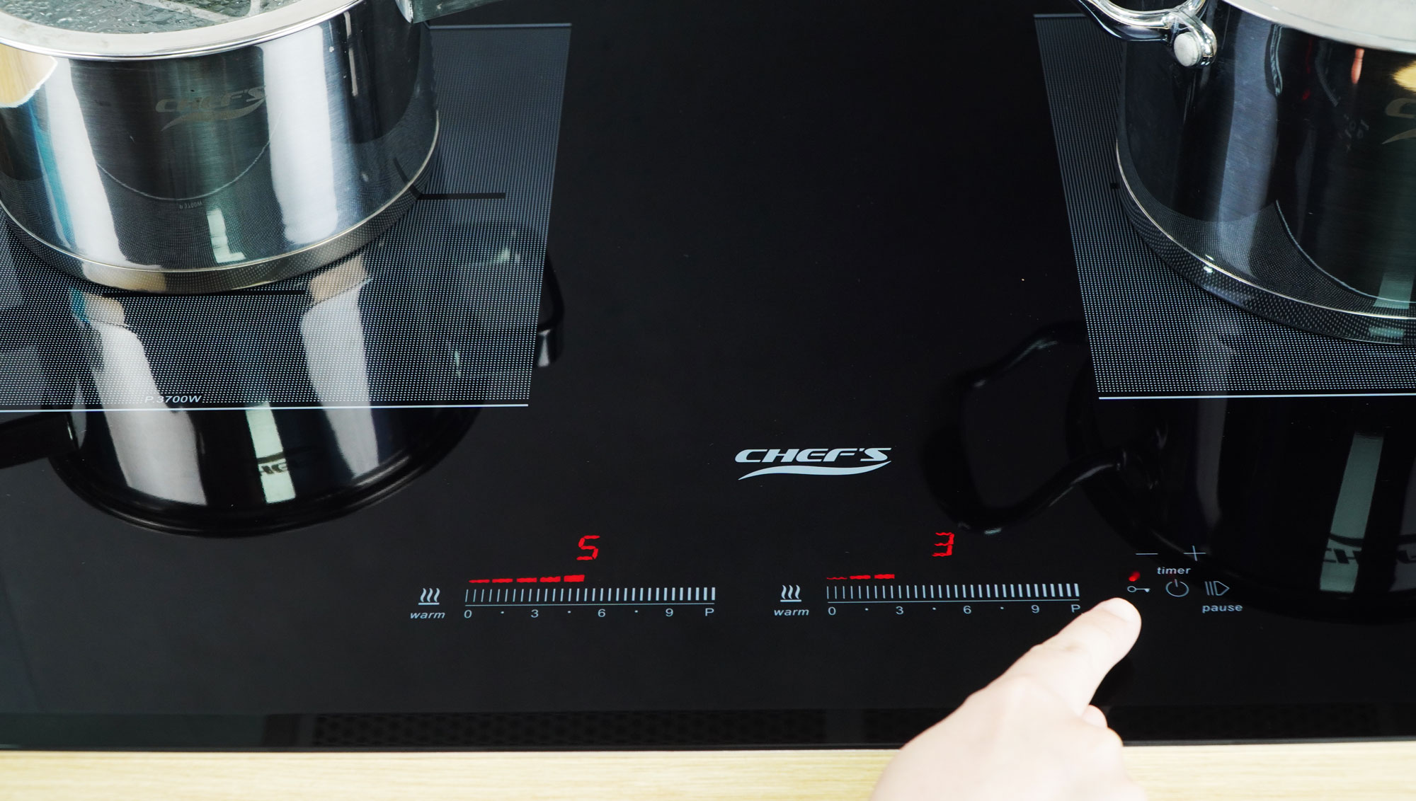 Bếp từ Chefs EH-DIH896 có khả năng hẹn giờ độc lập từng vùng nấu lên tới 1 giờ 59 phút, người dùng có thể dễ dàng thiết lập thời gian đun nấu, bếp sẽ tư động ngắt khi hết thời gian đã được cài đặt.
