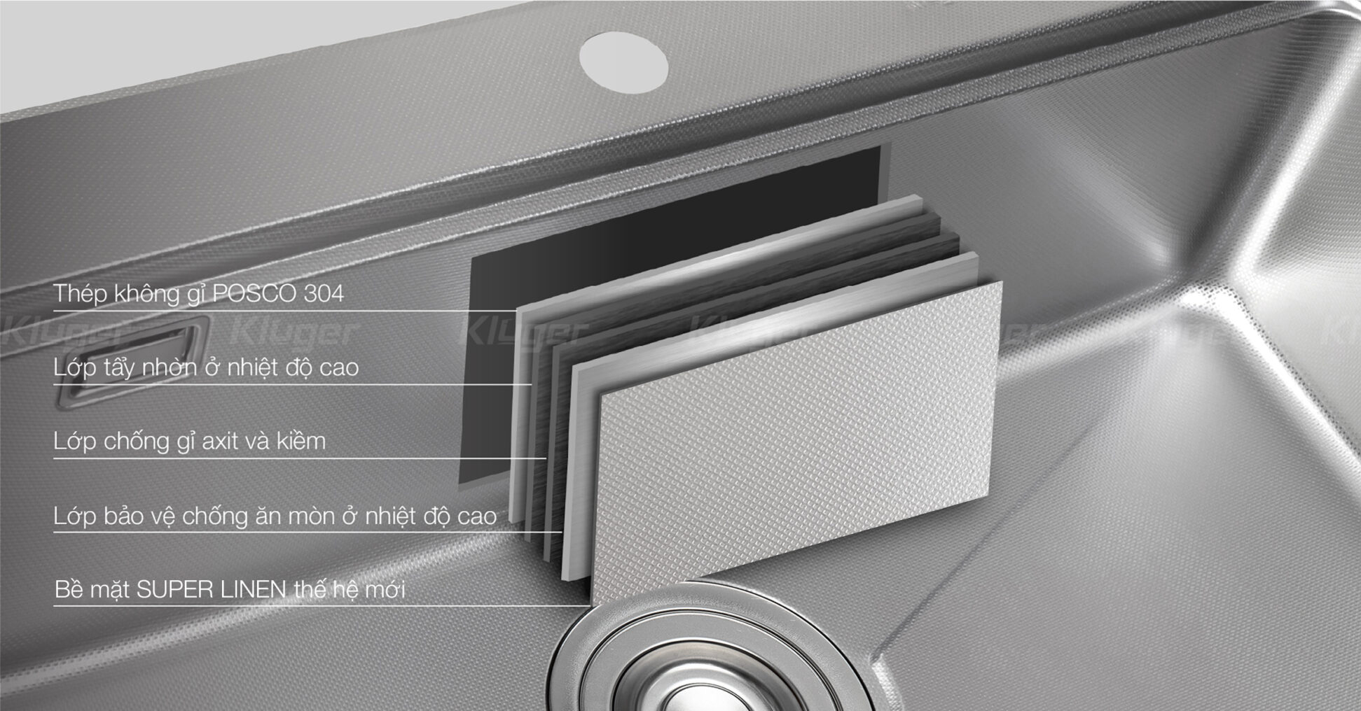 Bề mặt chậu rửa bát Kluger: