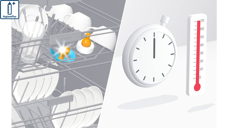 Chương trình diệt khuẩn sẽ tăng nhiệt độ ở chu trình xả cuối cùng lên 70ºC và kéo dài trong 10 phút. Chương trình diệt khuẩn sẽ phù hợp với người sử dụng nhạy cảm.