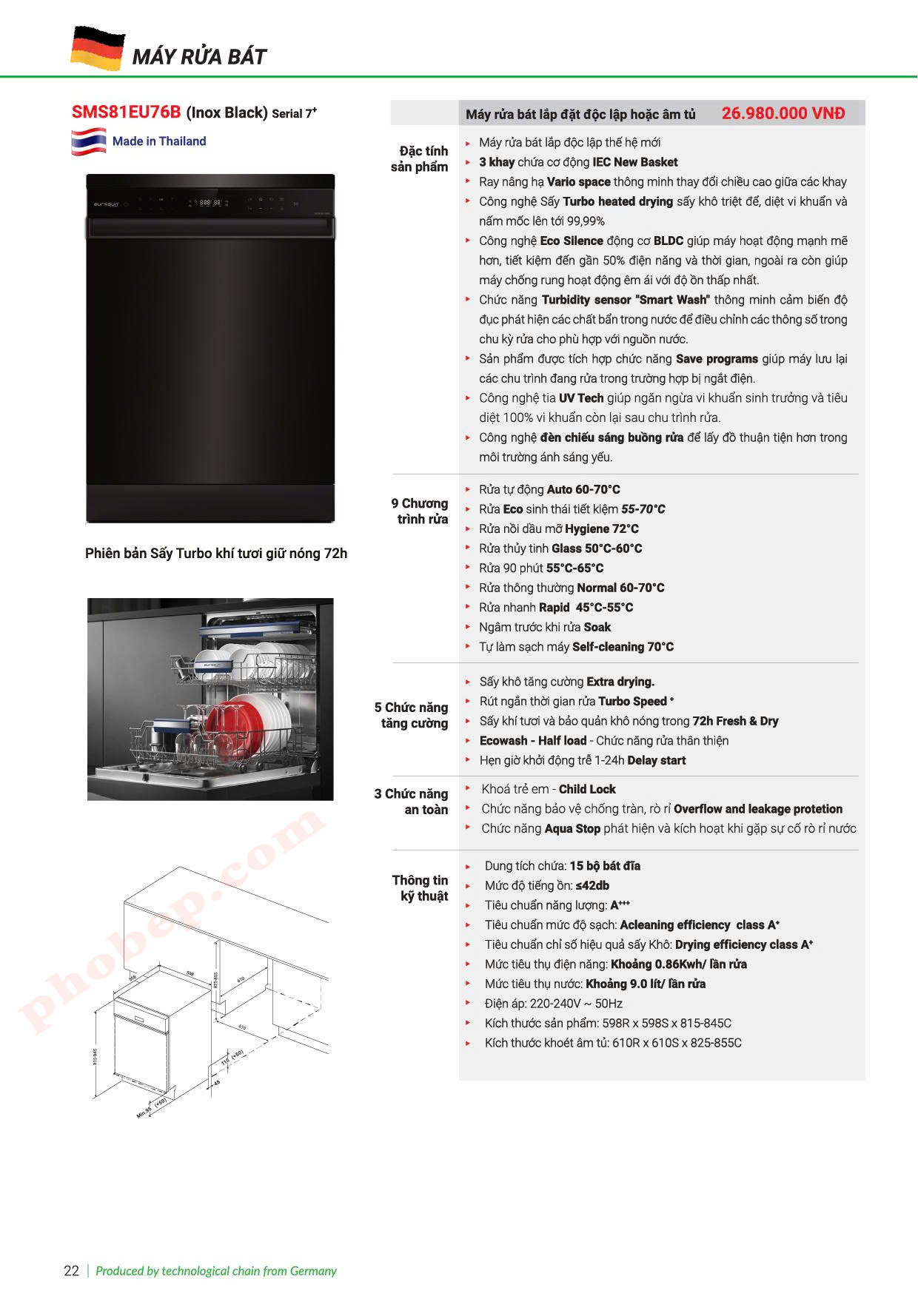 Máy rửa bát Eurosun SMS81EU76B 15 bộ